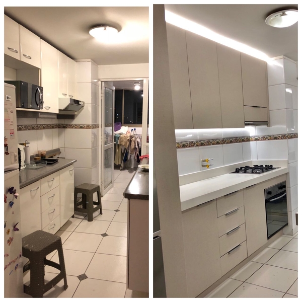 Nuestra recomendación es enchapar los muebles existentes con una melamina mas moderna y colocar cubiertas de granito o cuarzo, es un cambio que realizas una vez en tu vida y son las protagonistas de tu cocina.