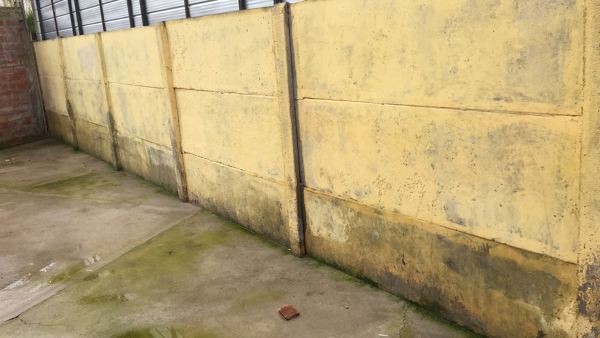 Debiera sacar las panderetas y hacer una cadena de pisoa la altura del muero de al lado y ponerle una mano de igol, es un.producto que rechaza la humedad